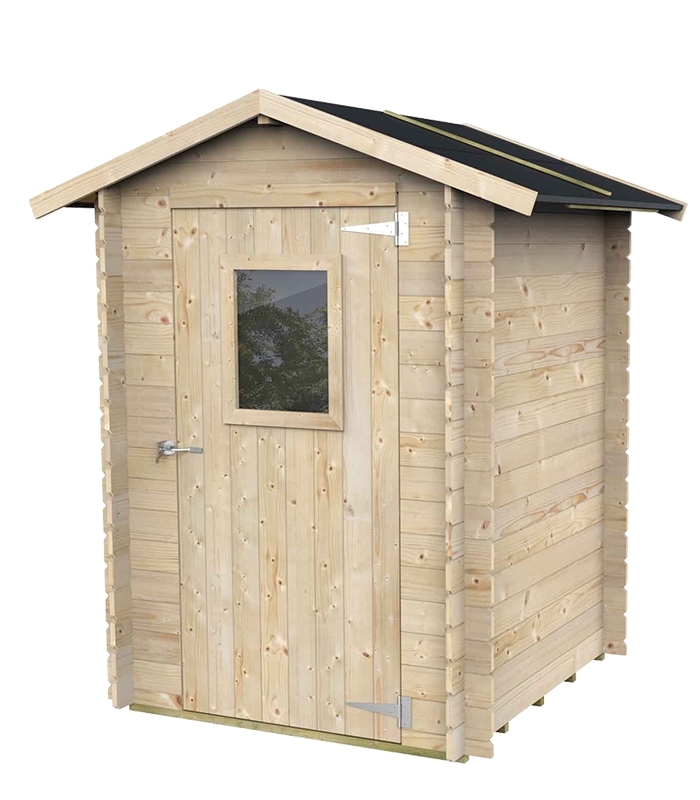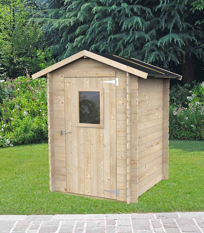 Hobby, l'abri de jardin en bois de la marque italienne Alce. Un abri d'une surface de 1.54 m² avec un toit double pente.