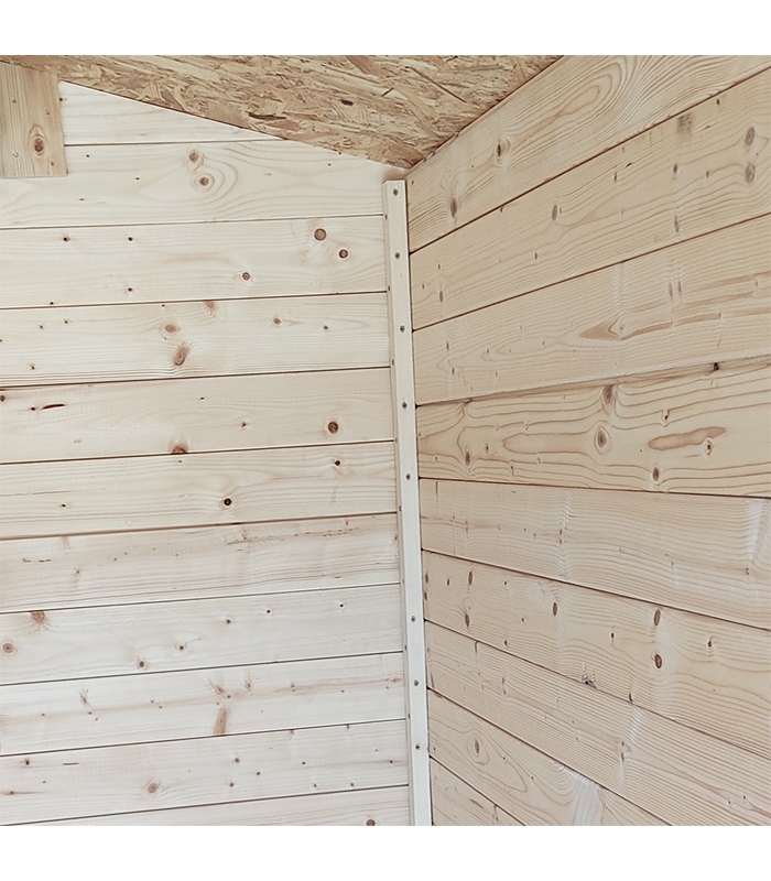 Murs en épicéa naturel non traité de 19 mm d'épaisseur, renforcés dans les angles