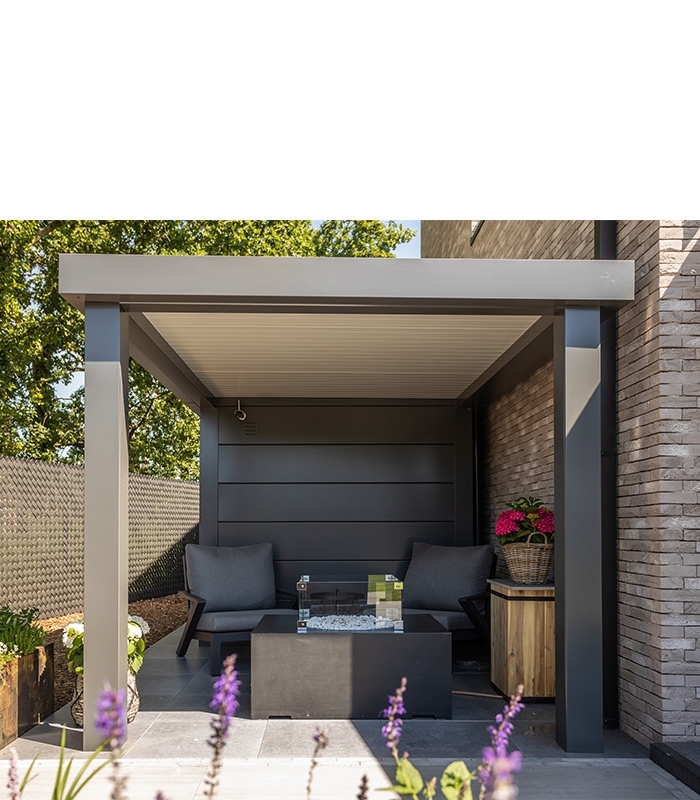 L'abri offre une superficie de 6,4 m² (2m68 x 2m38) est disponible en 4 coloris : anthracite, gris clair et blanc & anthracite et blanc. Elle dispose d'une partie auvent de 4m² (1m68 x 2m58) que vous pourrez positionner selon votre souhait sur la gauche ou sur la droite de l'abri. La partie auvent est uniquement disponible en coloris anthracite.
