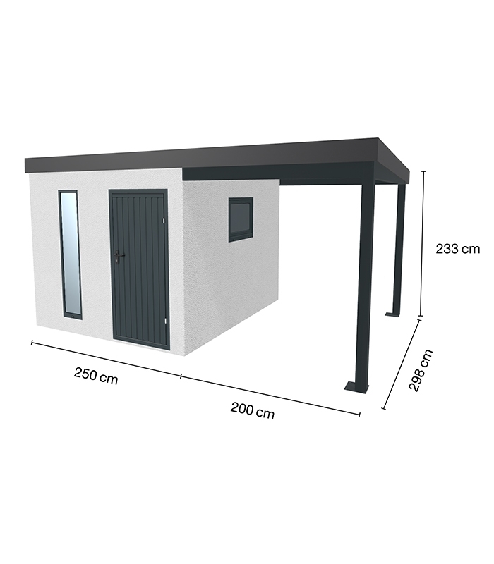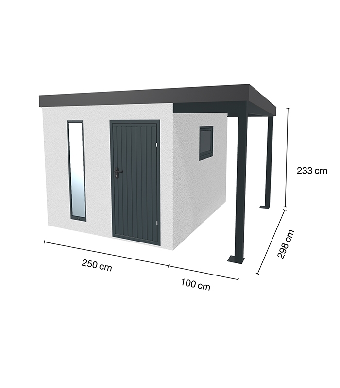 Les abris avec auvent sont composés de trois fenêtres design 35 x 170 cm anthracite et d'une fenêtre basculante 80 x 60 cm anthracite.