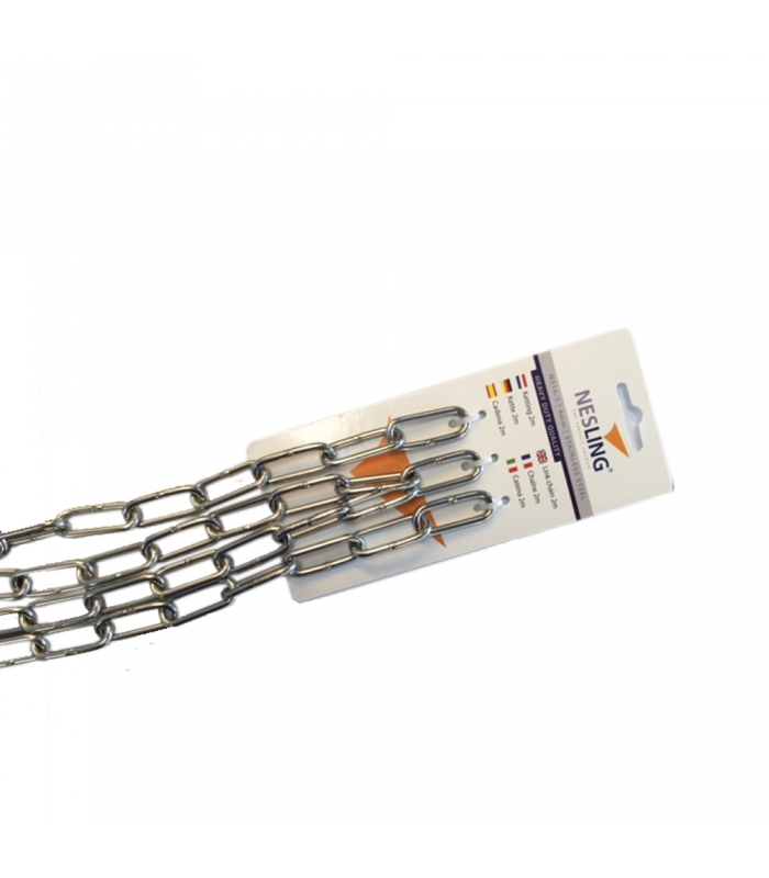 Epaisseur de l'acier des maillons : 4 mm Longueur de la chaîne : 2 mètres inox 316 compatible avec les autres accessoires NESLING : tendeur M8 et M10, mousqueton, cheville à oeil pour béton ou bois, pontet,