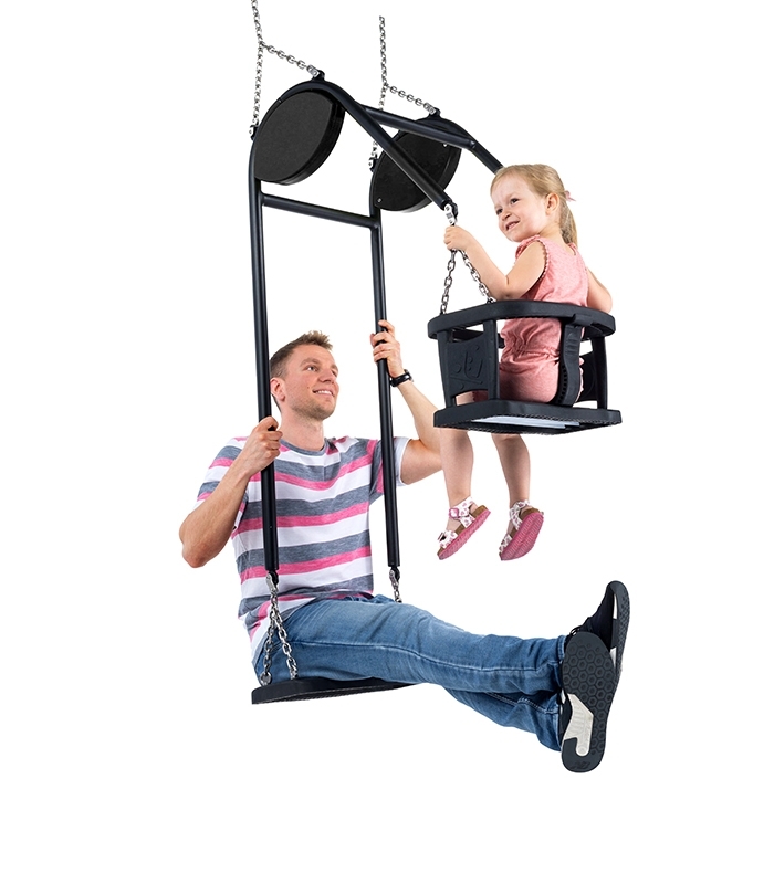Profitez de moments exceptionnels avec vos enfants avec la balançoire familiale Chaxi KBT composée d'un siège bébé CURVE et d'un siège de balançoire curve XL pour adultes ou enfants.