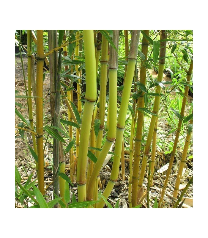 Base de nombreux chaumes en forme de zigzag. Feuillage vert foncé et lustré. Chaumes totalement jaunes et parfois très légèrement striés de vert à la base. Il se plait en toute situation et il est très résistant au froid. C'est un bambou traçant; attention tout de même à contenir ses rizhomes à l'aide d'une barrière. Nom d'usage: Phyllostachys aureosulcata "Aureocaulis'", Bambou de Pékin à chaumes dorés.