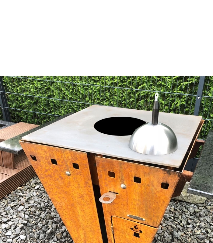 | Caractéristiques Magnus Acier | Cuisson 72x72 cm - Grille Ø 29 cm - Hauteur 87 cm - Poids 78 Kgs |