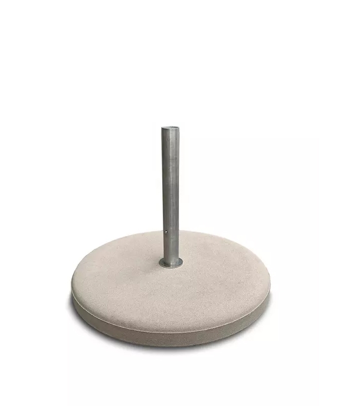 Parasol Nata UX Zen Lin avec poteau central rond de diamètre 2.8m, toile en Lin et châssis en beige limestone. En option : la base du parasol