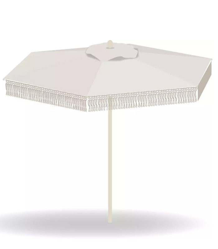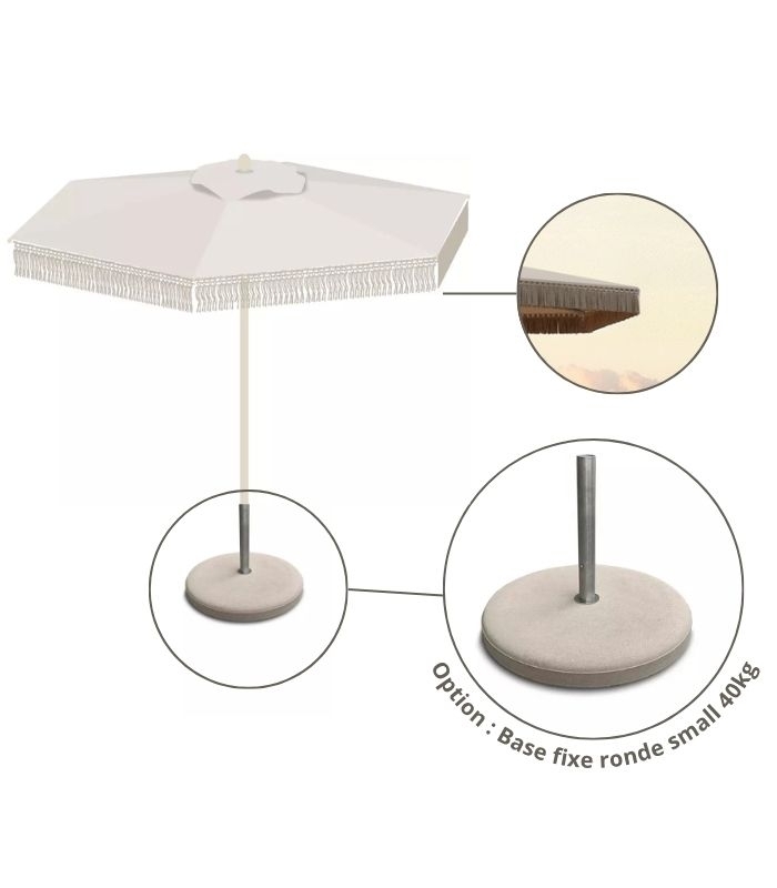 • Détails décoratifs pour se différencier : les petits éléments (franges, finition ton sur ton) rendent ce parasol plus “design” qu’un parasol basique.