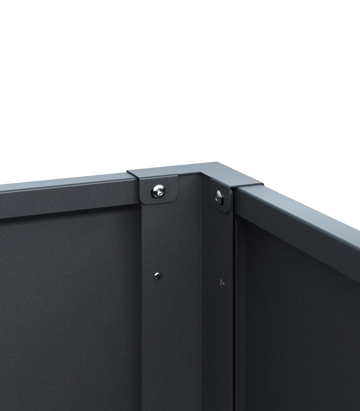 La construction robuste en acier garantit une grande stabilité dimensionnelle, même lorsqu’elle est entièrement remplie. Ainsi, le potager surélevé UrbanGrow M conserve sa forme à long terme et offre des conditions optimales pour une croissance saine des plantes.
