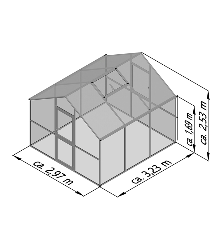 L'Ortasia III ne se contente pas d'être robuste; elle est pensée pour maximiser la croissance de vos jeunes plants dès le début de la saison. Sa structure en aluminium de haute qualité, ses parois en verre trempé de 4 mm d'épaisseur et sa toiture en polycarbonate de 10 mm offrent un abri sûr contre les intempéries.