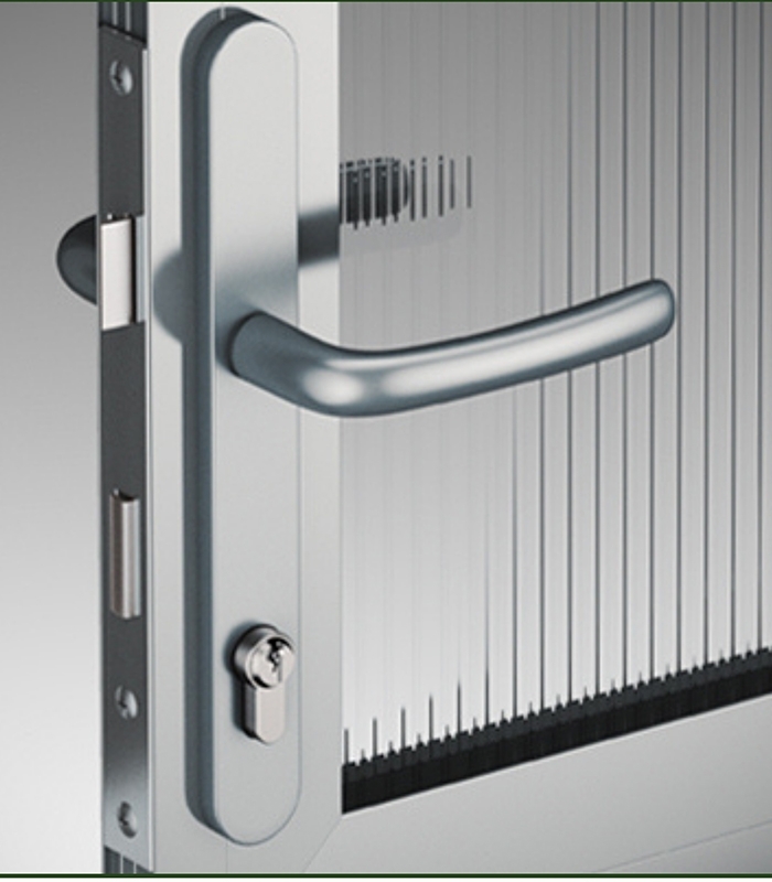 Porte simple divisée en deux parties de telle sorte que la moitié inférieure puisse reste fermée tandis que la moitié supérieure s'ouvre permettant un accès confortable spacieuse. Avec une ouverture de 0,76 m de large et 1,85 m de haut, entrez facilement avec vos outils, terreaux et grands pots.