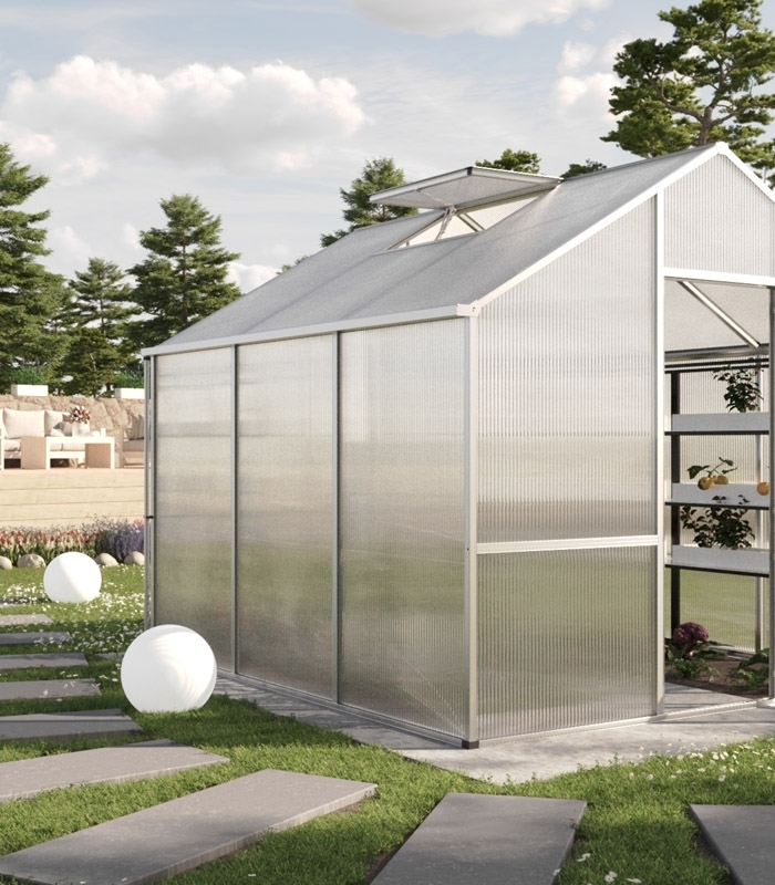 Dahlie III ne se contente pas d'être robuste; elle est pensée pour maximiser la croissance de vos jeunes plants dès le début de la saison. Sa structure en aluminium de haute qualité et ses parois en polycarbonate offrent un abri sûr contre les intempéries.