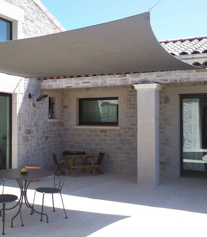 Voile d'ombrage Ingenua de formes carrées de très bonnes qualitées, de marque Umbrosa disponible en plusieurs couleurs, avec plusieurs styles de toiles différentes.